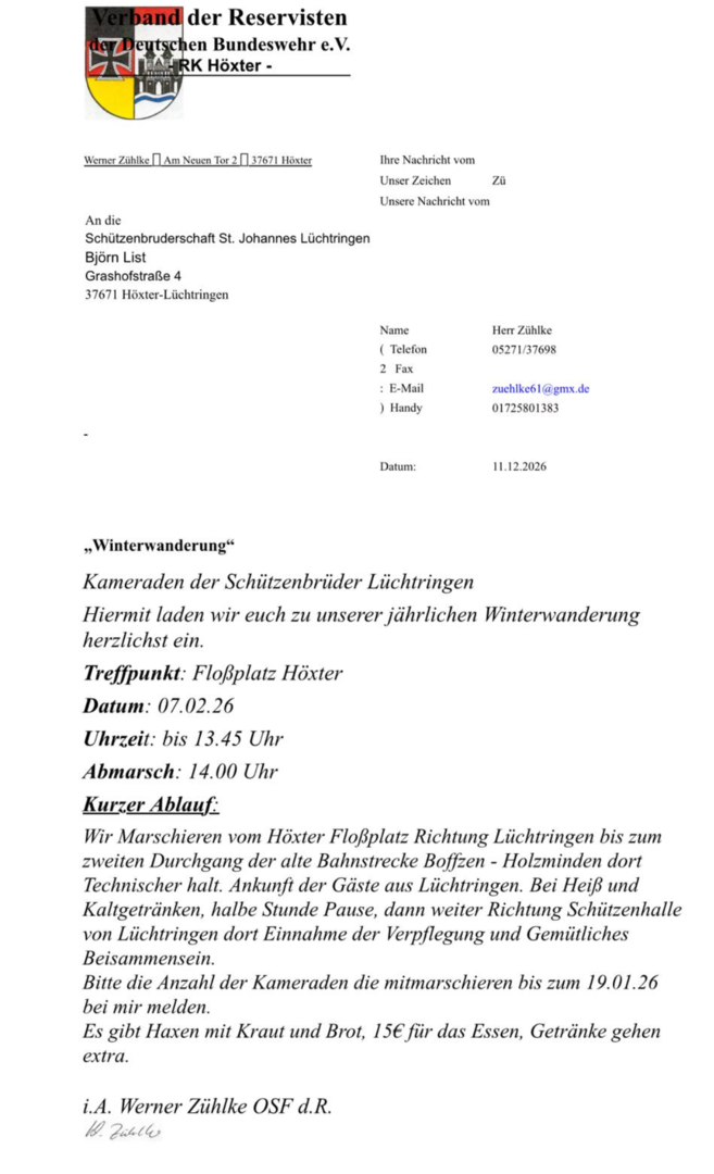 Einladung Winterwanderung Reservisten.