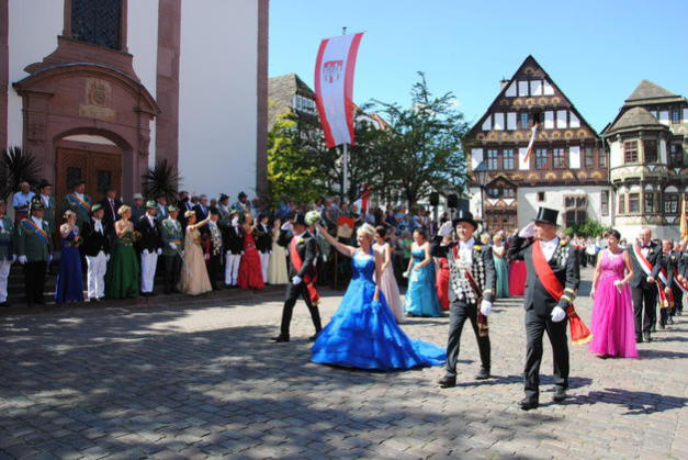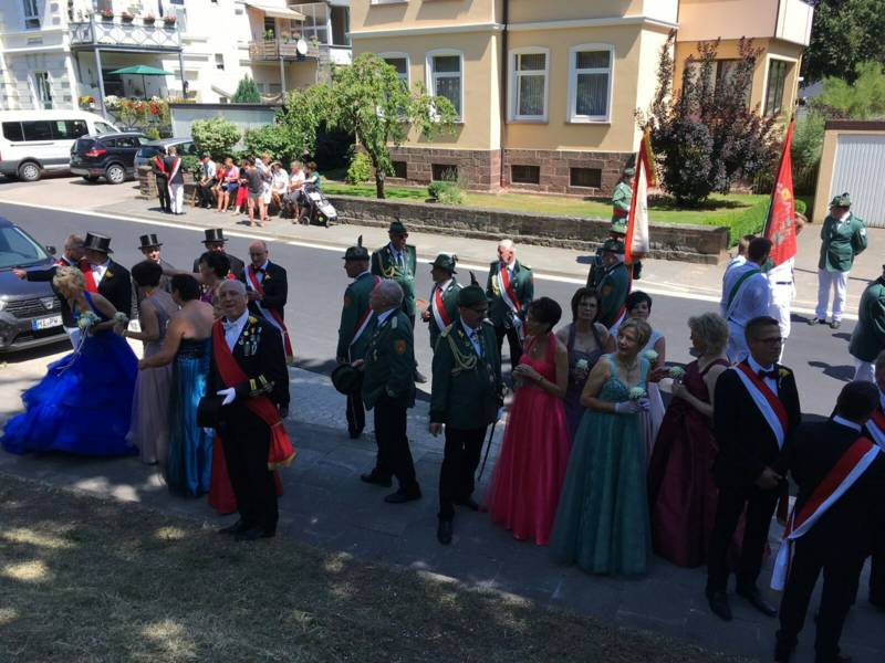 Teilnahme des Offizierskorps mit den amtierenden Majestäten an der heiligen Messe und anschließender Proklamation der neuen Bezirkskönige.