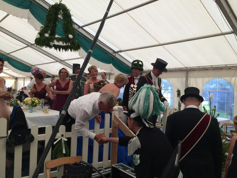Teilnahme des Offizierskorps mit den amtierenden Majestäten an der heiligen Messe und anschließender Proklamation der neuen Bezirkskönige.