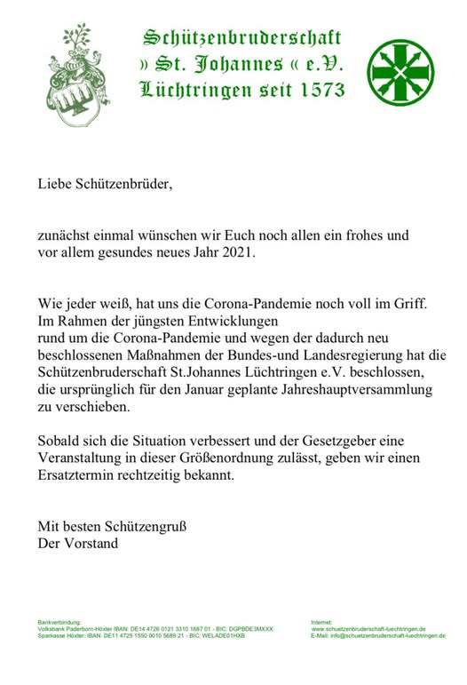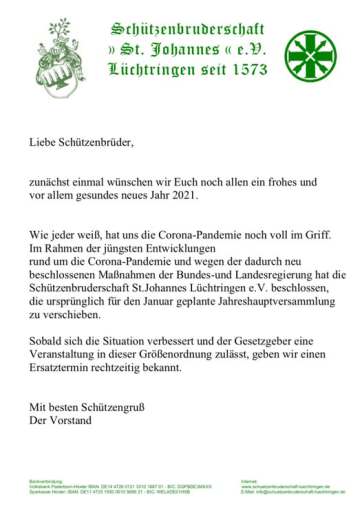 02.01.2021 Absage jährlicher gemeinsamer Schnatgang des