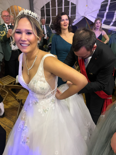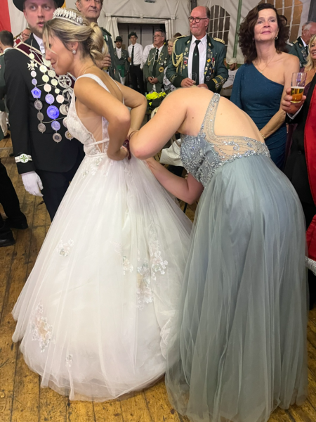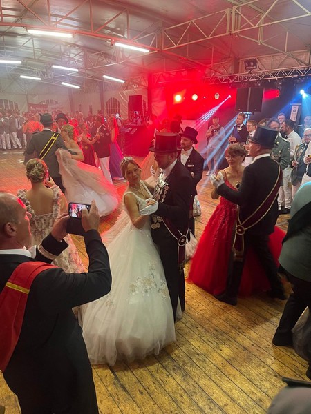 Anschließend zogen die Königspaare mit den Schützen/Offizieren in das nahegelegene Festzelt ein und nach dem Eröffnungstanz der Königspaare begann dann eine schöne und ausgelassene Feier.