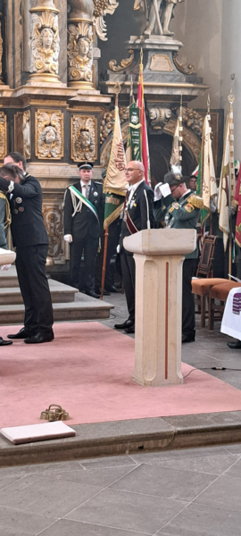 Teilnahme des Offizierskorps mit den amtierenden Majestäten an der heiligen Messe mit anschließender Prozession.