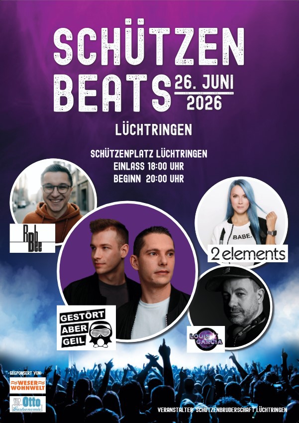 Am 26.06.2026 verwandelt sich unser Gelände in eine pulsierende Festival-Area voller Beats, Lichter und unvergesslicher Momente. Schützen Beats steht für energiegeladene Stimmung, elektronische Sounds und echtes Festival-Feeling – und ihr seid mittendrin!